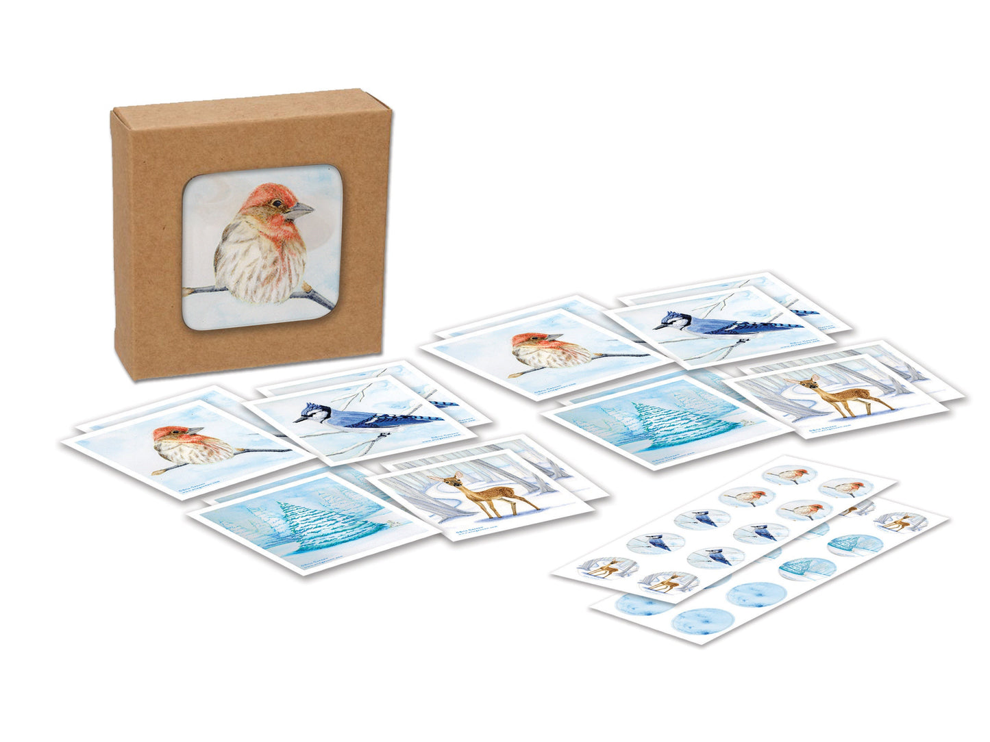 Immerse yourself in the beauty of the Winter Woodland Animals Series with 4 unique watercolor illustrations, each design represented 4 times—culminating in a total of 16 captivating cards. The charming images feature: