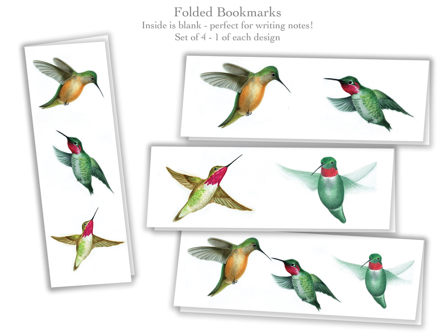 Folded Bookmarks - Set of 4 - The Hummingbird Series - Handmade, 100% cotton rag heavy weight paper